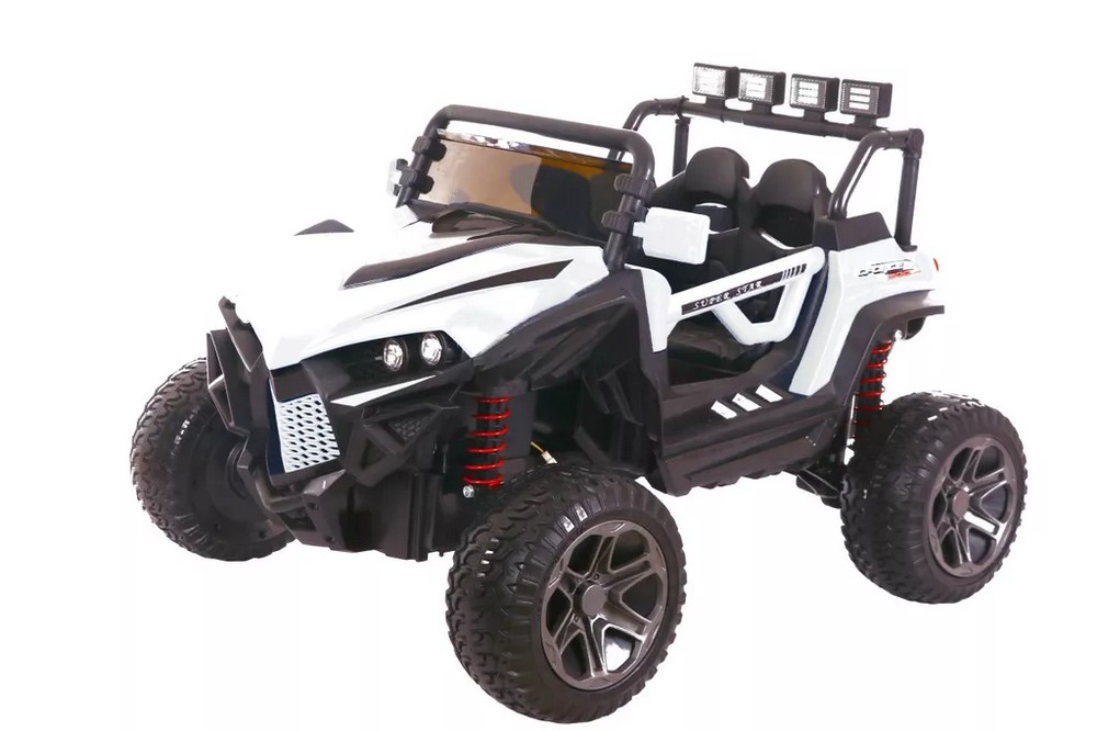 Bilen kan også styres eksternt ved hjelp av en fjernkontroll. Passer hvis barnet er for lite til å kjøre bil selv.