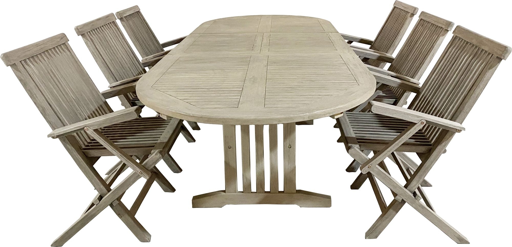 Saltö ovalt spisebord i teak 180-240 cm butterfly - Grå teak