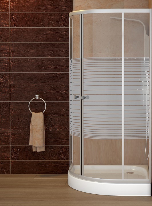 Quadrant dusjdører med stilige aluminiumfargede profiler og standard hvit farge på dusjkaret. Dørene er skyvedører, utstyrt med 5 mm sikkerhetsglass. Stilig mønster på glasset som også hindrer en viss innsikt inn til dusjen. Dusjkar og dørstamme er laget av slitesterk akryl som tilsammen med kabinettets enkle utforming gjør dette til et svært lønnsomt alternativ.