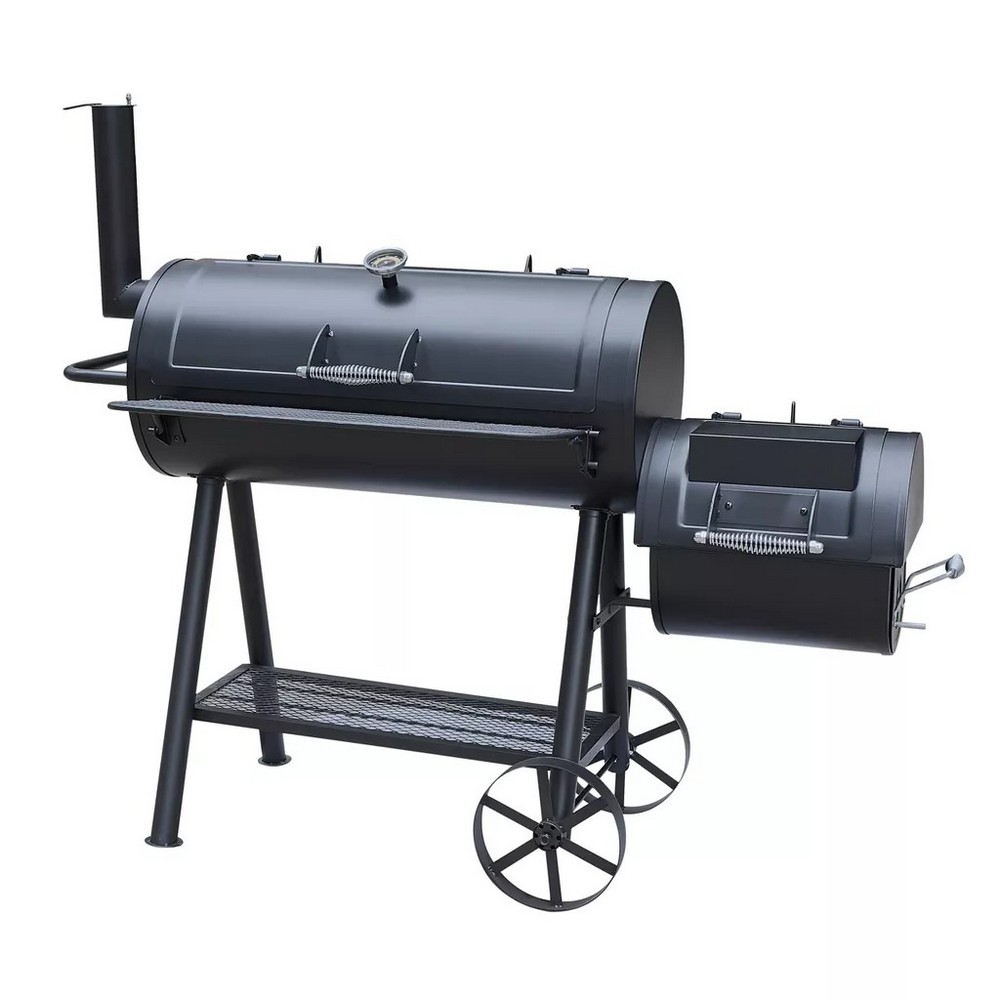 Kullgrill med to kammer, produsert i varmebestandige behandlede sorte plater. Det går helt utmerket å grille i både den lille og/eller den store kammeret. Når kun den ene kammeret er i bruk kan den andre gjerne benyttes til å holde ferdiggrillede matretter varme i påvente av servering.