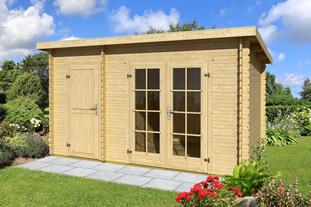 Denne Anneksen leveres som et komplett byggesett og monteres enkelt etter den medfølgende tegningen. Hytta er laget med tømmerformet design og struktur noe som gjør den både lettmontert og stabil. Alt materiale leveres ubehandlet, så det anbefales å behandle med olje, grunnmaling eller dekkfarge så tidlig som mulig. Alt som trengs for montering er inkludert.V.s. spiker, skruer etc.