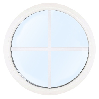 Rundt fast vindu med 3-glass isolerglass, energiglass og argongass. Glasset er laget av klart glass. Rammedybden er 68 mm. Vinduet er malt i Hvit NCS S0502-Y (med andre farger som tilvalg). U-verdi: 1,1.