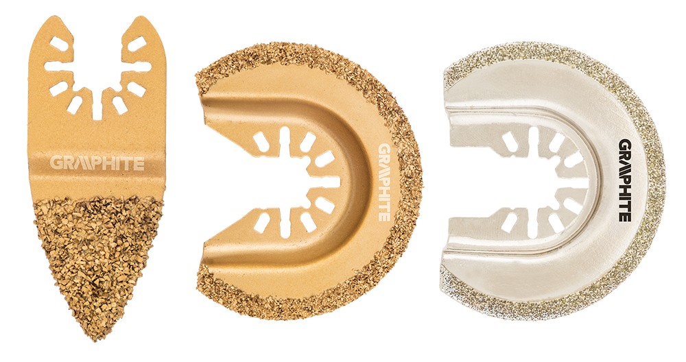 Sagblad for keramiske materialer. Med multifunksjonsverktøy muliggjør det presisjonsskjæring av fliser i rette linjer og fjerning av fugemasse.