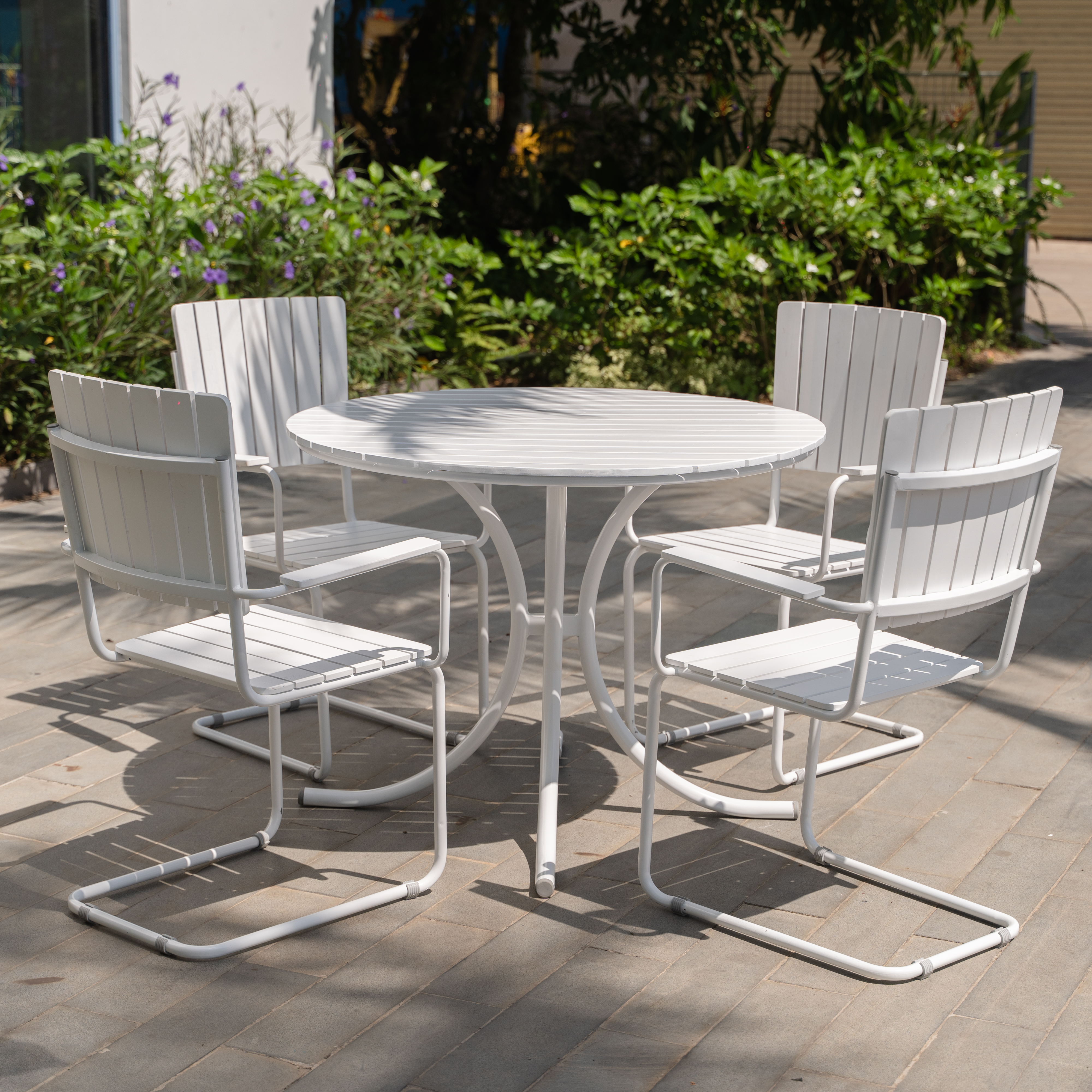 Sandby er en klassisk utegruppe, laget av aintwood og stamme av holdbar metall. Dette gjør utegruppen værbestandig og holdbar for å takle uteplassens miljø. Hele gruppen er hvit med skandinavisk design.