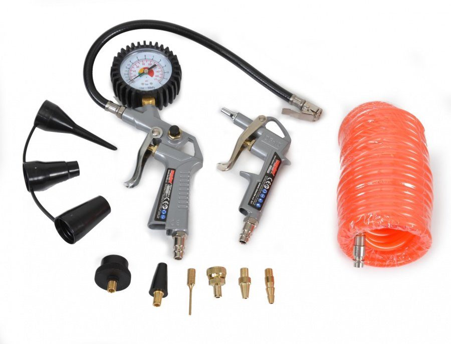 Sett med 5 m lufttrykkslange, trykkmåler etc..