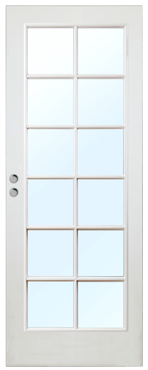 Lakkert kompakt skyvedør i klassisk speilinndeling for mye lysgjennomgang.
