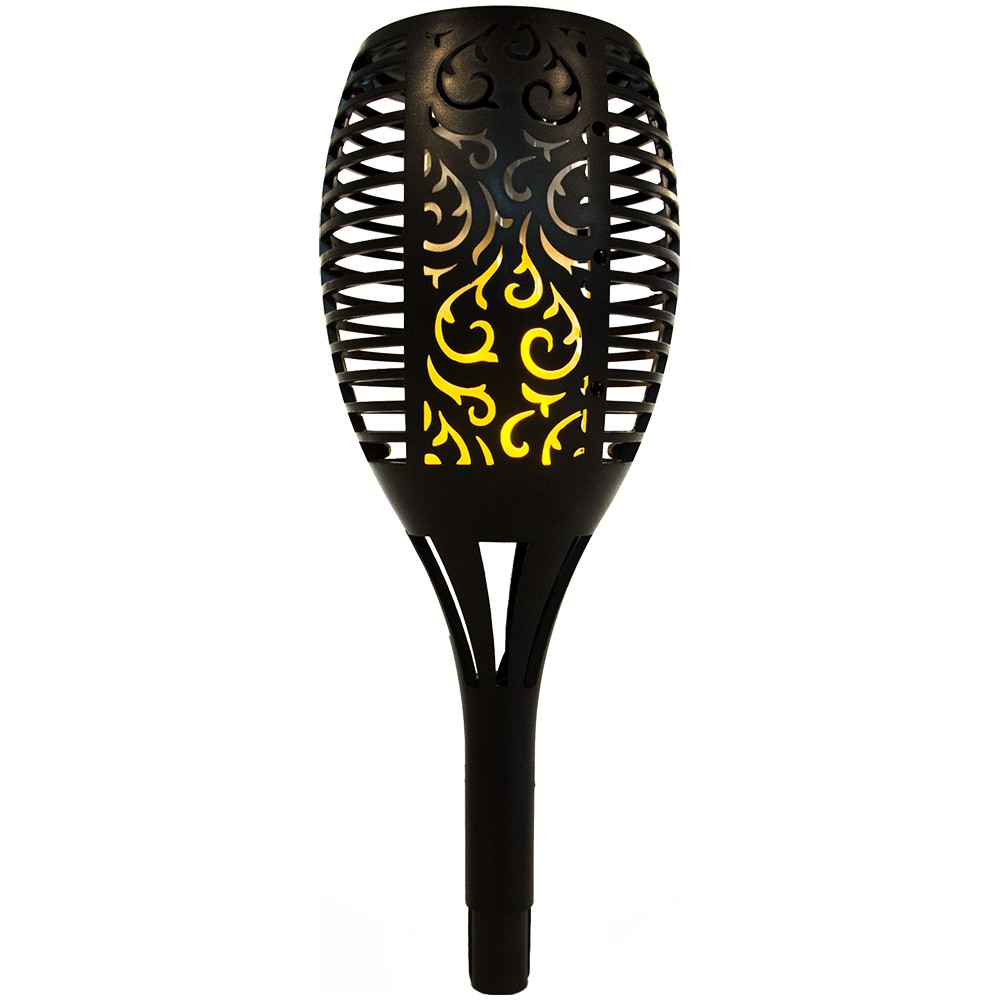 Hagefakkel med solcelle. Denne fakkelen er utstyrt med solpanel og et litium-ionbatteri. Plasser hagefakkelen på en solfylt plass, og batteriet lades opp i løpet av den. Det moderne og elegante designet, den varm oransje gløden og den realistiske flamme-effekten gjør dette til en fantastisk stemningsbelysning til hagen din. Spydet på produktets bunn kan benyttes til å plassere det i bakken.