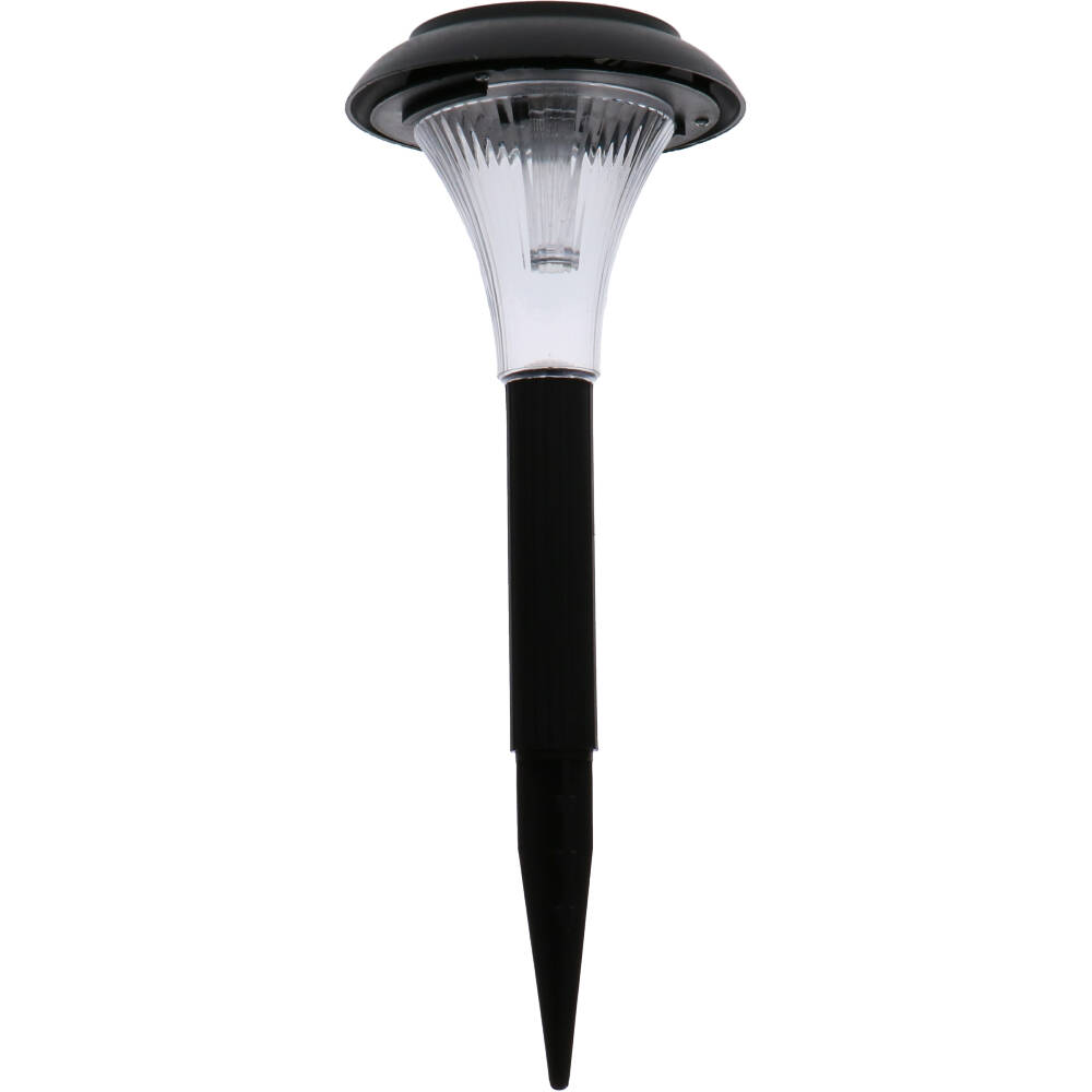 Solcelledrevet lykt formet som en sopp, med markspyd for enkel plassering i bakken. Denne lampen har en belysningstid på 6-8 timer og lades opp av solen i løpet av dagen. Kapslingen er laget i plastikk. Når det bli mørkt tennes lampen automatisk. Leveres i et sett med 2 deler. Mål: 86 * 385 mm.