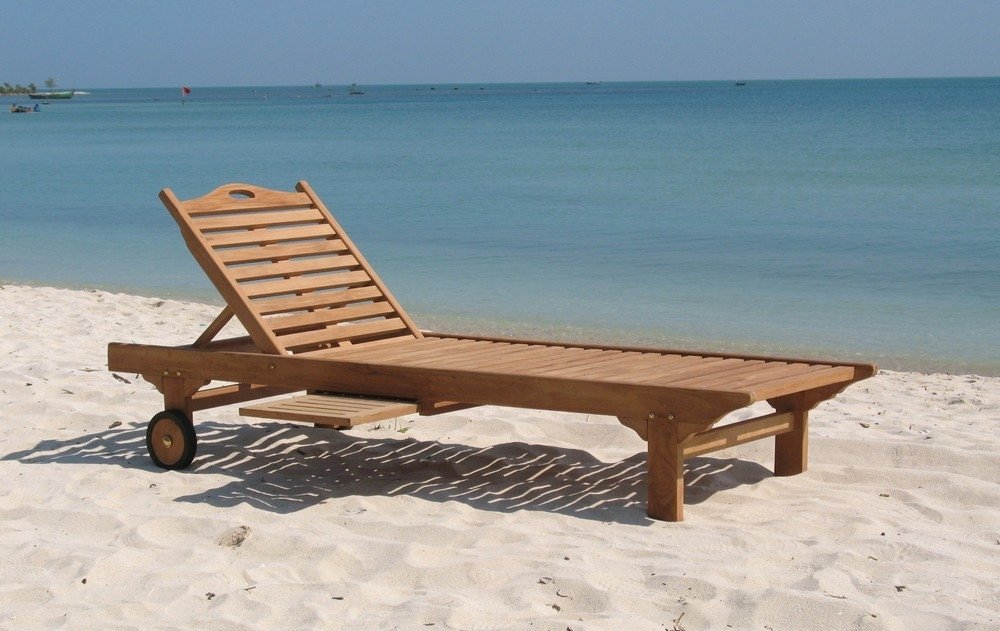 Solstol Fania laget av teaktre, som er kjent for sin holdbarhet og brukes derfor til båter og møbler.