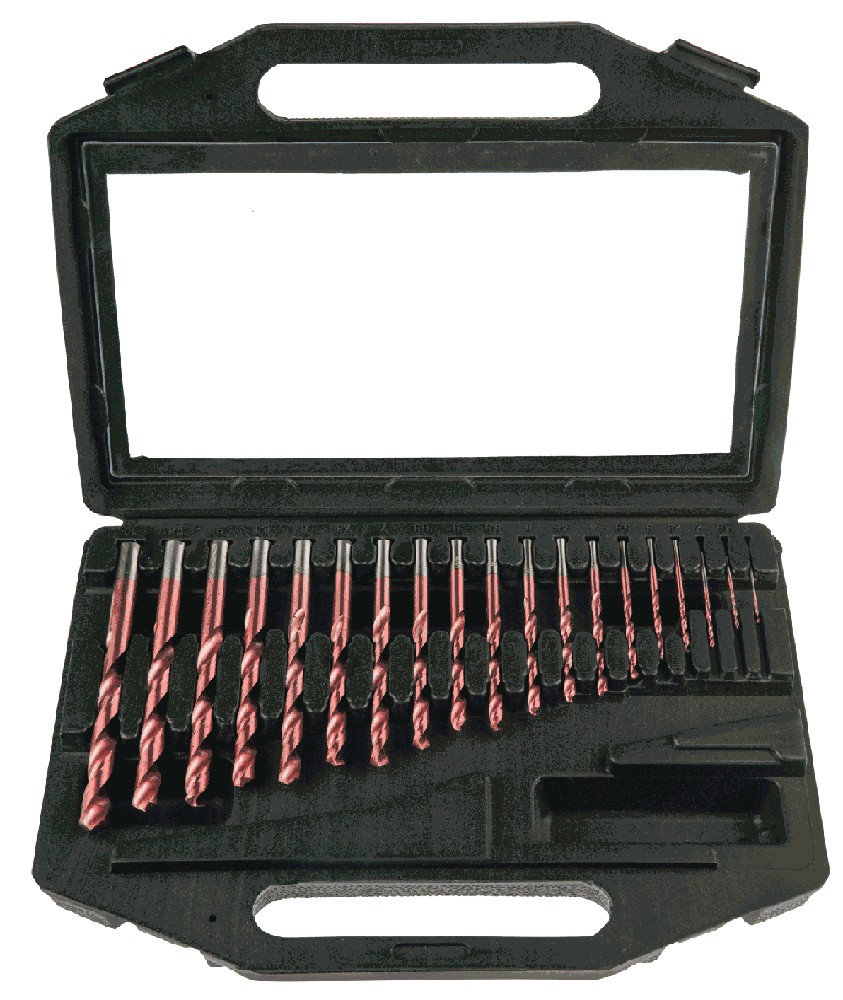 Sett med metallborr med 1,0-10,0 mm diameter av hurtigstållegering 9341. Ytterligere belegg av titannitrid bidrar til å redusere motstanden ved bearbeiding og gir høykvalitets borede hull, spesielt ved boring med automatiserte borr. 135 ° spissvinkel og meiselkant gjør det enkelt å bore uten stansing. Verktøyet er perfekt for boring i stål, støpejern, ikke-jernholdige metaller (kobber, aluminium, messing).