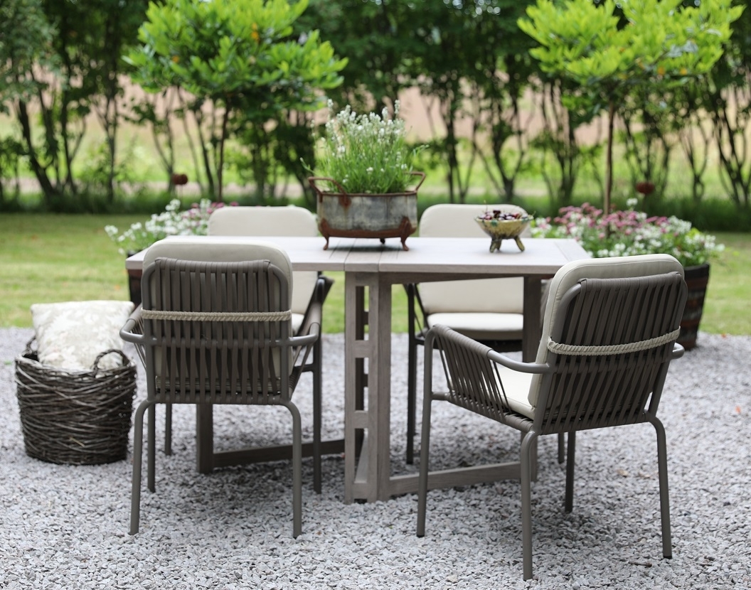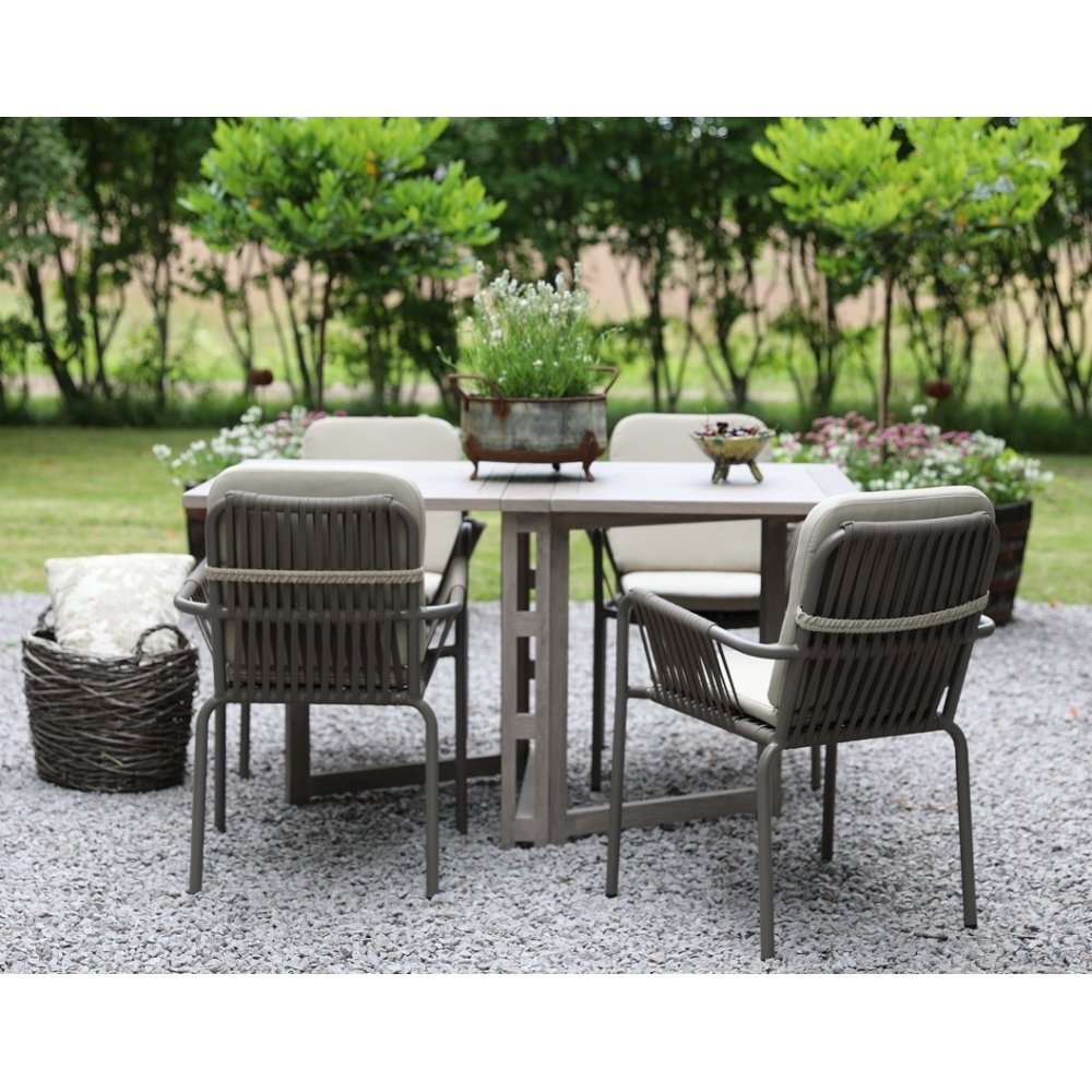 Spisegruppe Saltö grå teak: Klaffbord inkl. 4 stk. grå Lincoln-karmstoler