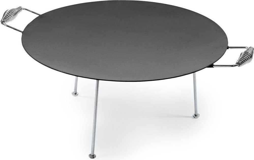 Stekehelle laget av 3 mm varmvalset stål. 3 stk. avtakbare ben er inkludert. Håndtak på to sider av steakhellen for enkel flytting.