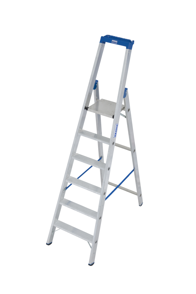 Denne kompakte aluminiumstigen kan brukes til en rekke forskjellige oppgaver både innendørs og utendørs. Enkel å oppbevare, med en vekt på 8,4 kg og en vektkapasitet på 150 kg. Stigen har 6 trinn, med en lengde på ca 2,05 meter kan du få en arbeidshøyde på ca 3,40 meter. Stigen er utstyrt med kraftig antisklibeskyttelse, for sikkert og stabilt bruk. Det finnes dessuten en krok til bøtte, for den profesjonelle brukeren.