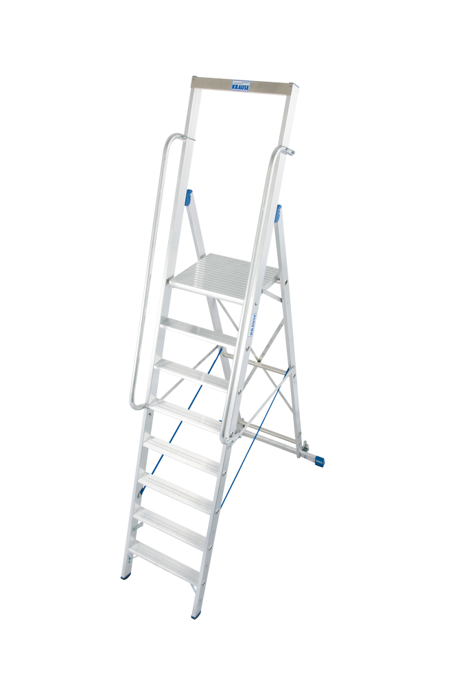 Denne kompakte aluminiumsstigen kan brukes til en rekke forskjellige oppgaver både innendørs og utendørs. Enkel å oppbevare, med en vekt på 21 kg og en vektkapasitet på 150 kg. Stigen har 8 trinn, med en lengde på ca 2,90 meter kan du få en arbeidshøyde på ca 3,90 meter. Stigen er utstyrt med kraftig antisklibeskyttelse, for sikkert og stabilt bruk. Det finnes dessuten en krok til bøtte, for den profesjonelle brukeren, og med den ekstra store plattformen har du enda mer plass til både deg selv og annet materiale.
