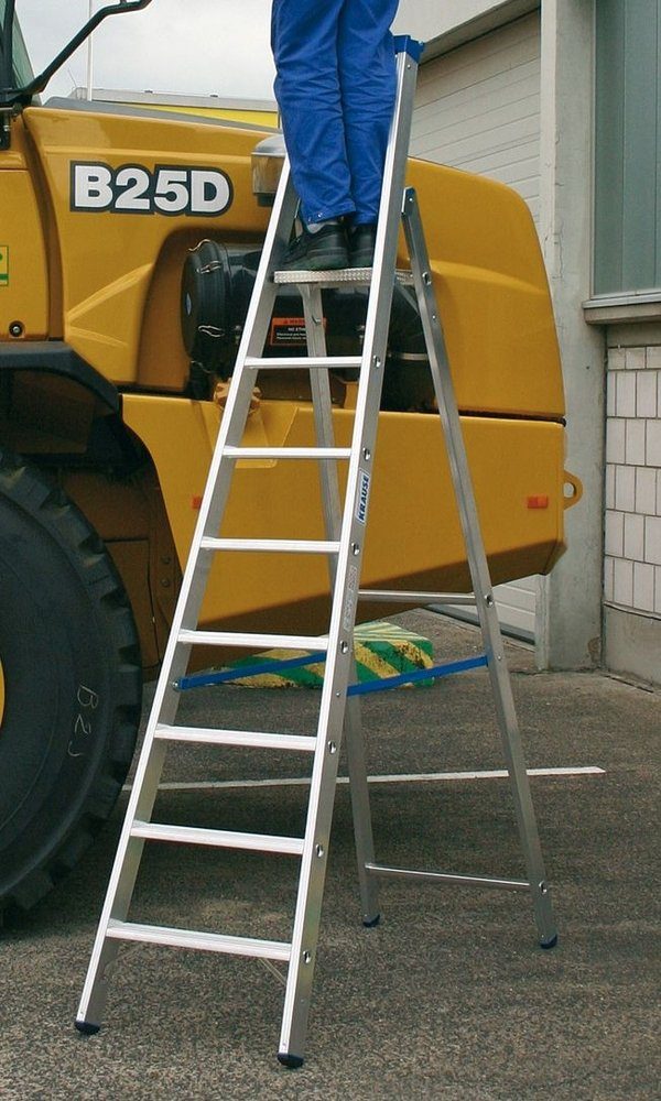 Denne kompakte aluminiumstigen er nyttig for en rekke innendørs og utendørs bruk. Enkel å oppbevare, med en vekt på 10,5 kg og en vektkapasitet på 150 kg. Stigen har 8 trinn, med en lengde på ca 2,50 meter kan du få en arbeidshøyde på ca. 3,90 meter. Stigen er utstyrt med sterk sklisikring, for sikker og stabil bruk. Det er også en krok for den profesjonelle brukeren.