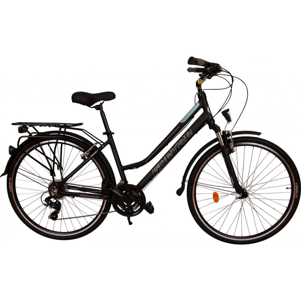 Sykkelen er utstyrt med fjæring foran, Shimano girsystem, V-brems foran/bak og pakkeholder. Rammen er laget av lett aluminium som gjør sykkelturen lettere.