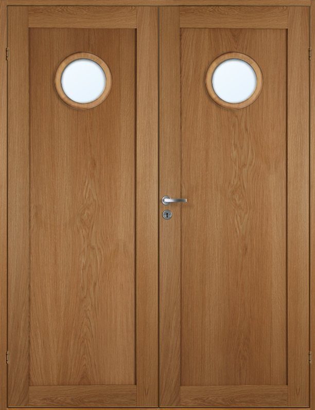 Ulvøya dobbel innerdør - Eikefiner - Rundt frostet glass med eikering: