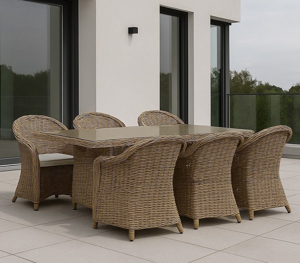 - Utegruppe: 6 stoler og bord 200 x 100 cm rotting - Hampton/Mercury