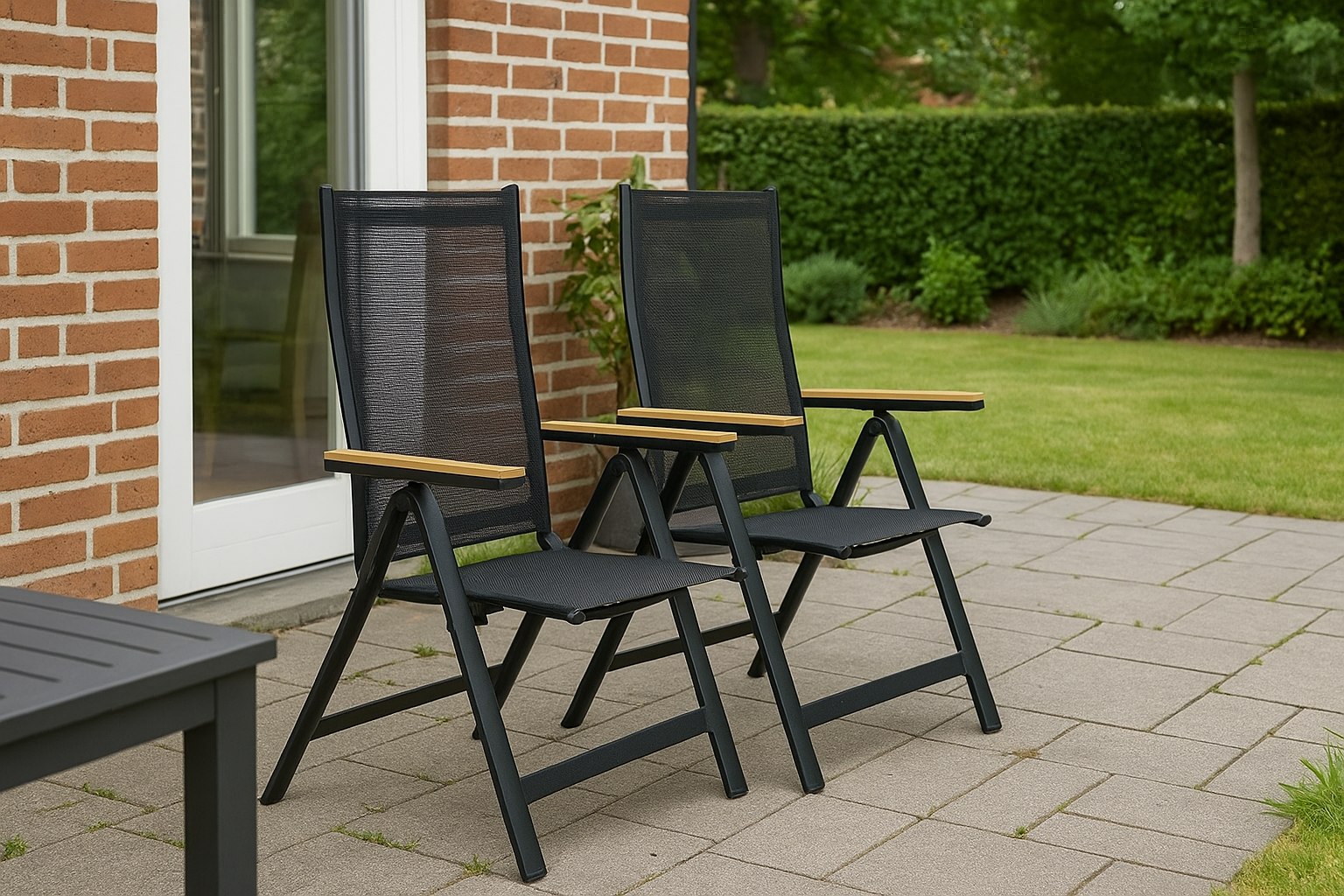 Utendørs spisegruppe - Las Vegas & Svea | Sort aluminium | Stoler med 8 posisjoner