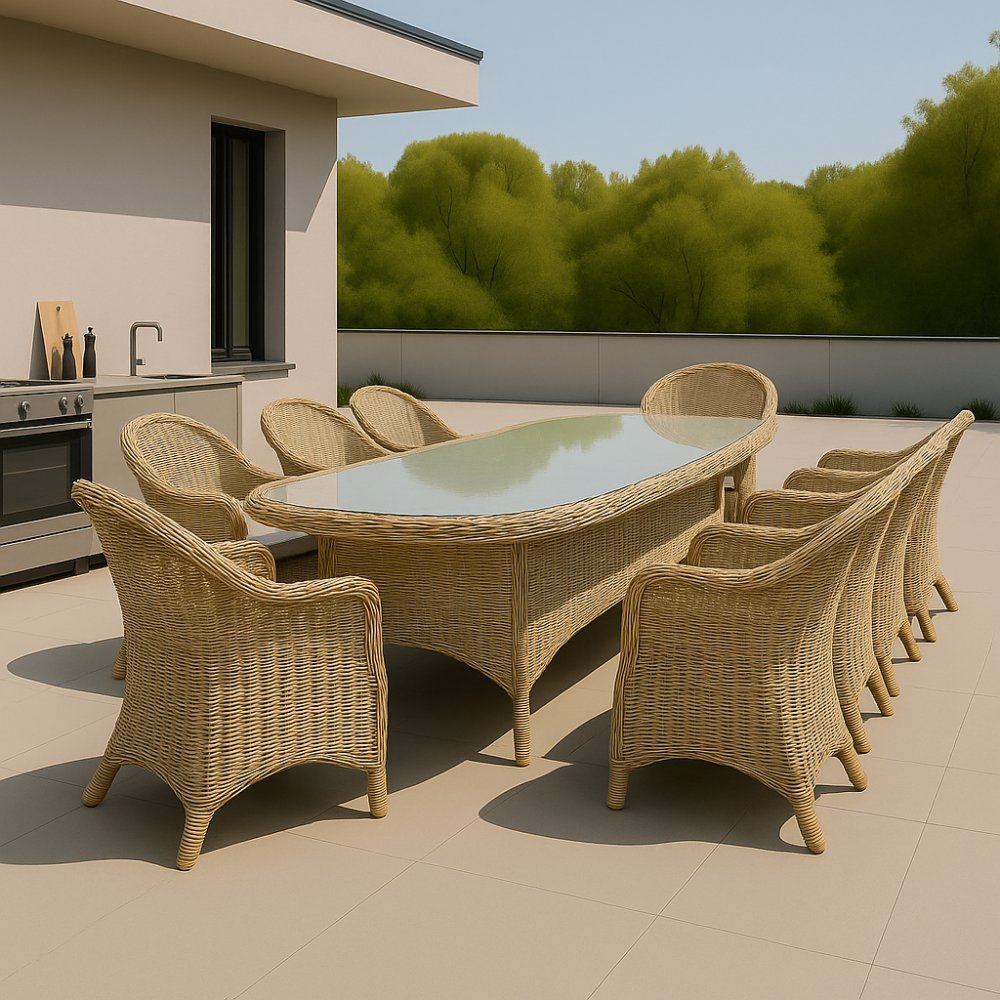 Utendørsgruppe: 8 stoler og spisebord 230 x 100 cm rotting - Menton/Merkur: