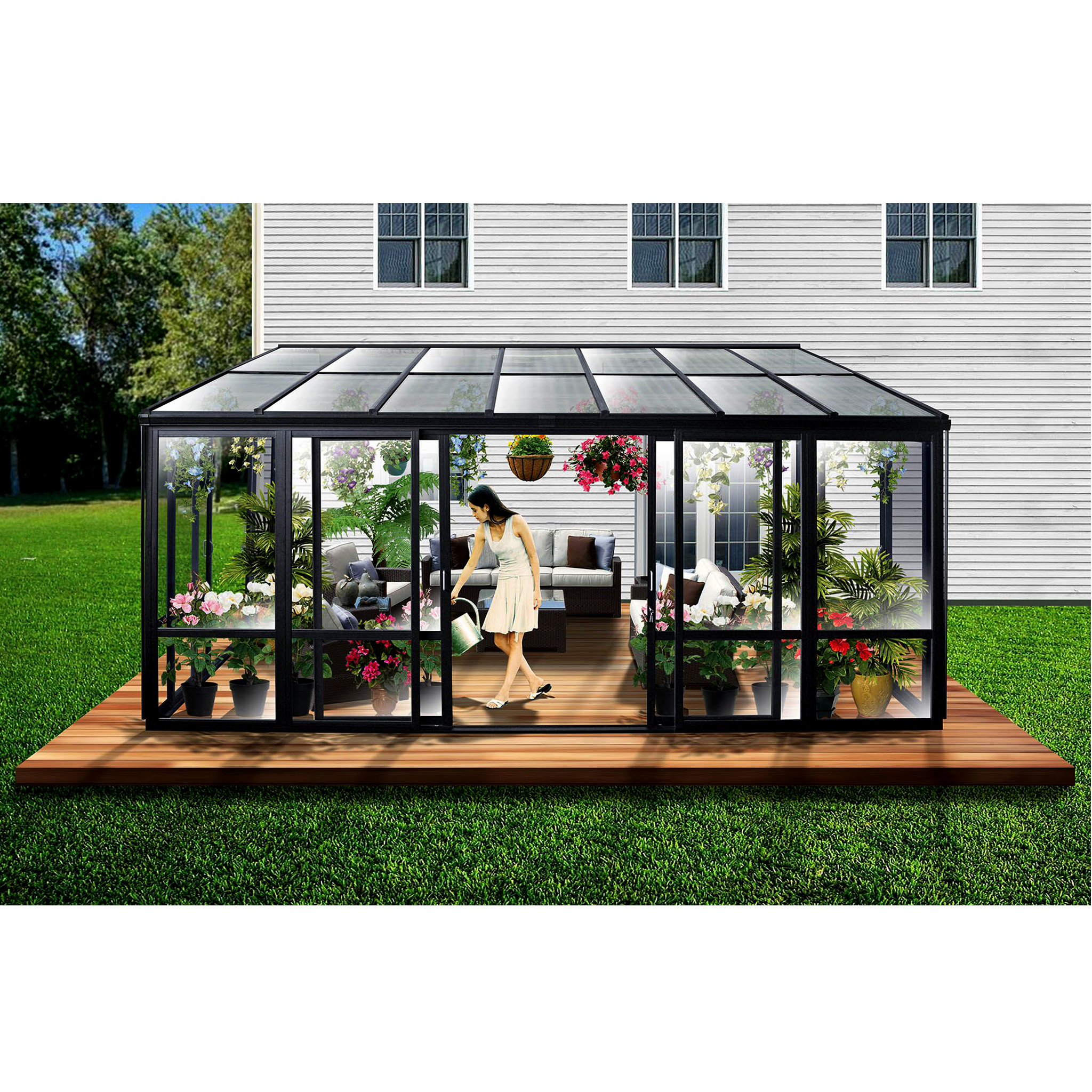 Utvendig rom 14,8m² | Sikkerhetsglass og kanalplast | Aluminiumsramme | Svart