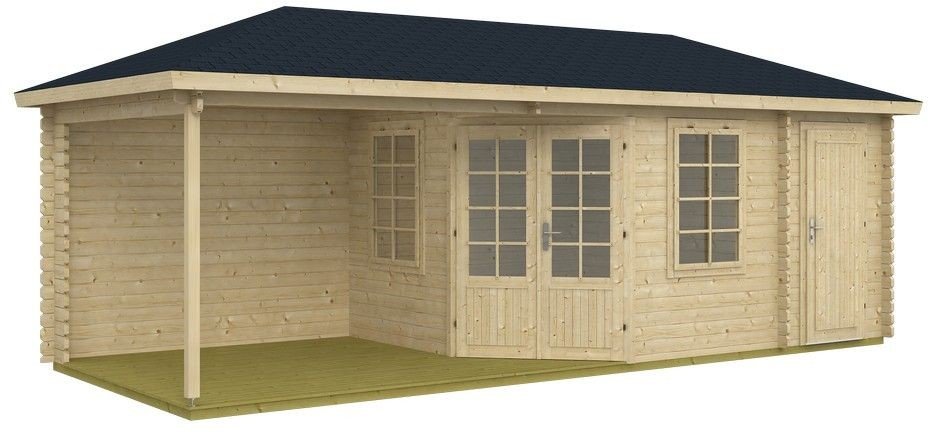 Vaxholm anneks er et tømmerhus i elegant design med et lite rom og en åpen del med tak. Et fint anneks som kan brukes til nye. Materiale av nordisk gran av høy kvalitet, valgt med omhu. Utstyrt med to dører, en dobbeldør og en enkelt dør med dekorative sprosser, brystning og to åpningsvinduer. Annekset egner seg godt som for eksempel jakthytte, lager med mer. Leveres som byggesett, ubehandlet, og det er enkelt å montere etter anvisningen som følger med.