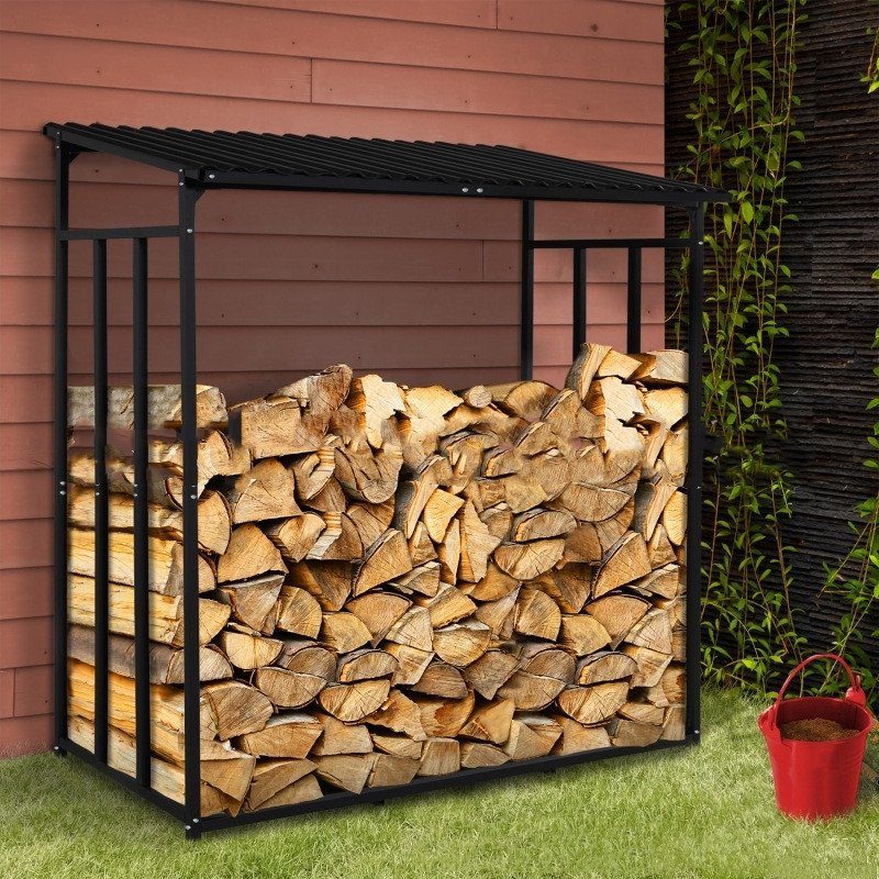Denne vedboden passer perfekt i hagen eller på terrassen og tilbyr en praktisk oppbevaringsløsning for ved. Den robuste designen tåler tøffe værforhold, samtidig som den gir enkel tilgang til drivstoffet ditt.