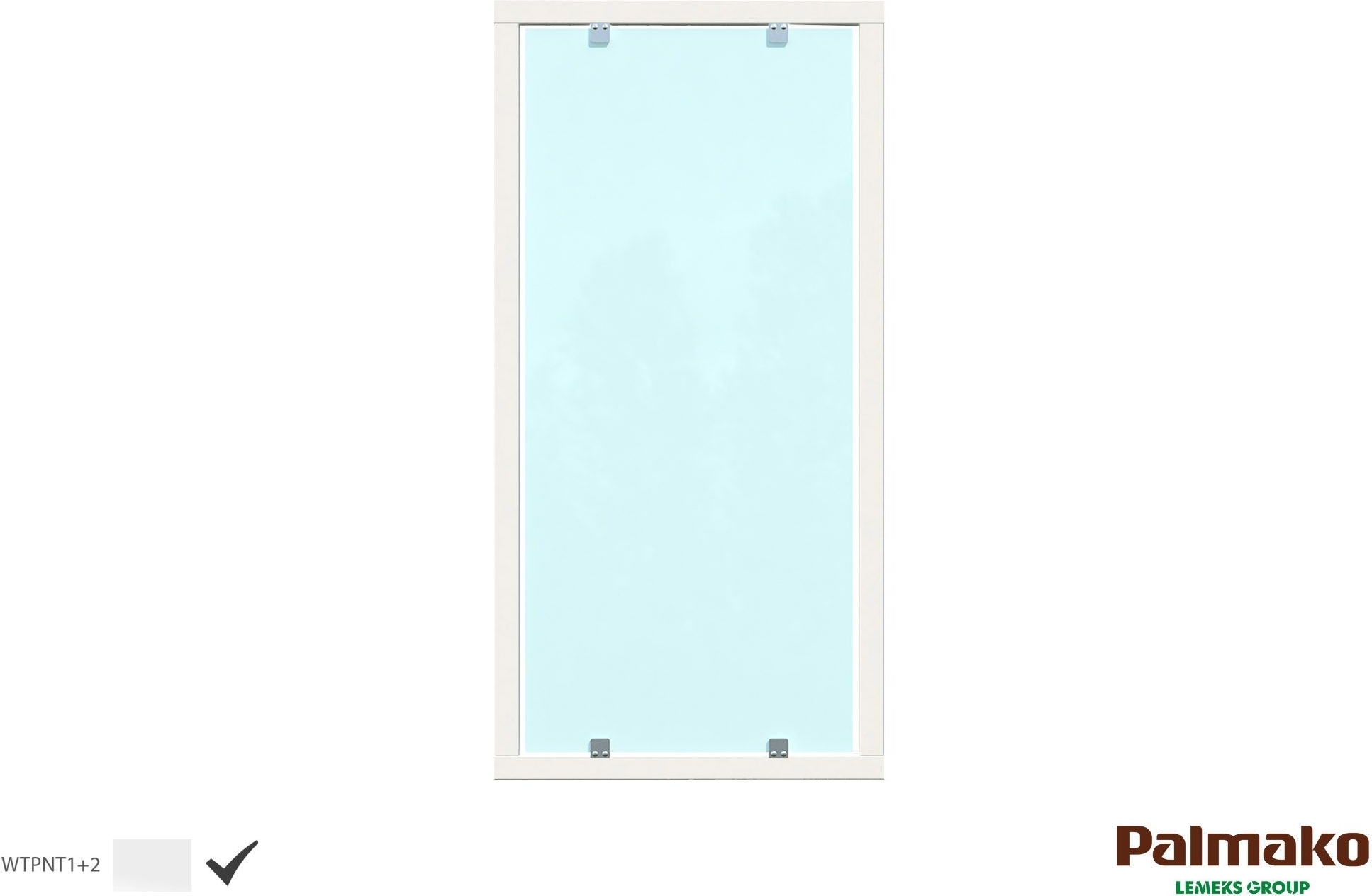Skjermen er laget av nordisk gran, malt med primer og to lag hvit maling, samt 6 mm herdet glass.