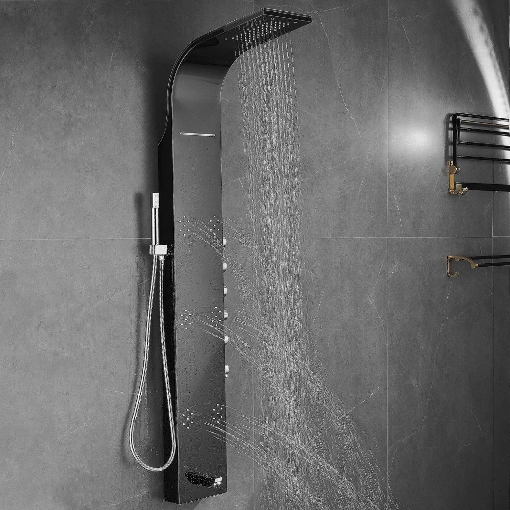 Dusjpanel i svart speilblank rustfritt stål med fem stråletyper